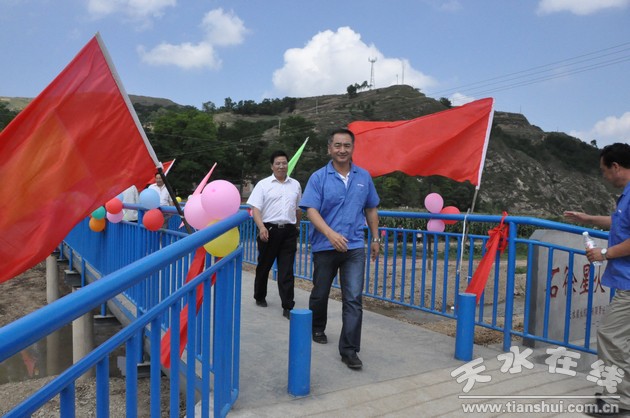 最后,星火机床集团公司董事长李维谦和天水镇党委书记安志成共同为石徐星火桥揭牌,为石徐星火桥通行剪彩。剪彩结束后,一位村民老人高兴的第一个走上大桥,表达了此时此刻的幸福感受。(石广谋)