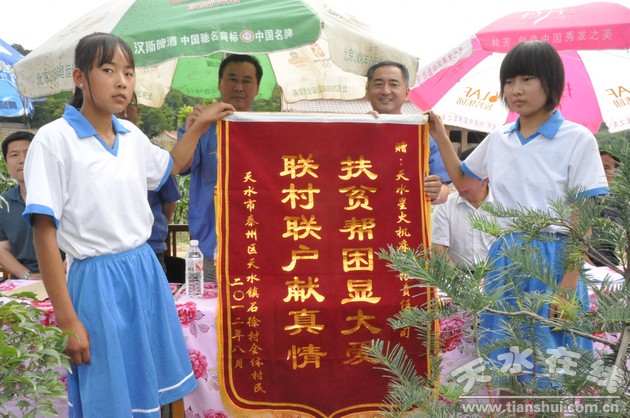 石徐村村民代表向星火机床公司敬献了“扶贫帮困显大爱,联村联户献真情”的锦旗一面。
