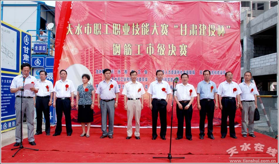 2012年8月10日上午,天水市职工职业技能大赛“甘肃建投杯”钢筋工市级决赛在甘肃建投五建集团锦绣苑保障性住房住宅小区工程施工现场隆重举行。此次比赛由天水市总工会、人力资源和社会保障局、住房和城乡建设局、科技局、工信委联合主办,由甘肃建投五建集团负责承办。