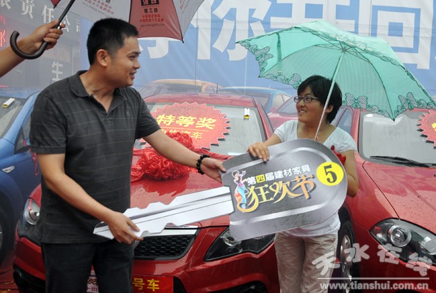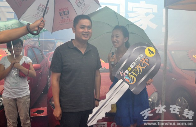 (天水桥南服装小商品城总经理赵金山为中奖客户颁发车钥匙)