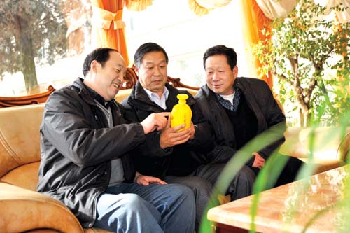 天河酒业注重走专家治厂的发展道路,负责生产的副总经理吴三多,就是一位研究型的管理者。他多年前撰写的《五大香型白酒的相互关系与微量成分浅析》,至今仍是专业领域的重要参考文献。采访中,他拿出作为明年天河酒业高端消费领域主打产品的“羲皇故里·龙酒”,向我们说起了天河产品的工艺特点。天河酒业三个系列的产品均选用由泸州老窖制曲生物公司生产、被我国酒界权威周恒刚先生誉为“天下第一曲”的中高温“包包曲”作为糖化发酵剂;酿酒工艺采用以五粮液、剑南春为代表的跑窖法,集众家之长于一体。同时,企业与四川食研院、川大生物工程系、五粮液研究所、全兴集团、四川宜宾高洲酒业集团等五家科研单位及名酒企业形成了长期稳定的技术协作关系,通过“请进来,走出去”的方式,培养了一大批技术人员和操作骨干。这款全新包装即将上市的“龙酒”,就是经中国知名酿酒大师赖登译倾力勾调的作品,其“无色透明、窖香浓郁、香气幽雅、口味甘爽醇甜、香味谐调、余味净长、浓香风格突出”的风格,在上市前期组织的业界专家品鉴中广受好评,采访现场的省酒协秘书长王高生也对其品质给予了肯定。