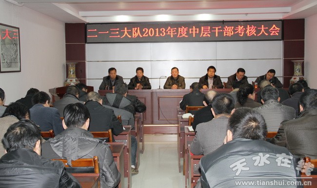 12月26至27日,核地质213大队召开2013年度中层干部考核大会。大队领导、全队中层干部、机关全体人员、生产经营单位职工参加了考核会。会议由党委书记董明胜主持,大队长王正堂在会上做了重要发言。