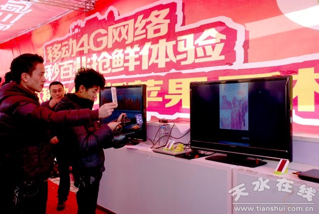 1月17日下午,在龙城广场举行的千名4G体验客户招募暨首批4G手机发布会上,天水移动分公司总经理何文革宣布:天水移动4G网络正式开启,预计在春节前后将在全市两区五县的中心区域实现4G商用。随着4G网络的启用,天水移动推出首批包括苹果iPone5s/5c、三星、索尼等9个品牌的20余款4G手机,预计2014年4G手机的种类将超过200款,为广大移动客户提供适合自己需求的多种选择。