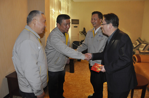 1月22日上午,甘肃省政府国有企业第三监事会主席谢天德和兰州长城电工股份有限公司董事长杨林,受甘肃省委组织部、甘肃省国资委党委委托,慰问长城电工系统享受国务院津贴专家,全国劳动模范、甘肃省领军人才、长城电工天水长城开关厂有限公司副董事长、总工程师马炳烈和享受国务院津贴专家、甘肃省领军人才、长城电工天水电气传动研究所有限责任公司副总经理朱奇先,并通过公司领导向全体员工致以节日的问候。