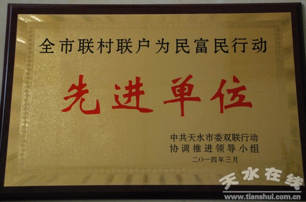 3月5日,天水市召开“联村联户为民富民”行动会议,全面贯彻甘肃省“联村联户为民富民”行动大会精神,总结过去两年的工作,部署当前和今后一个时期重点工作。会议表彰了在全市“联村联户为民富民”行动中涌现出的 50个先进单位和100名先进个人。星火机床公司被授予天水市“双联”行动先进单位称号。 (康永明 肖丽霞)