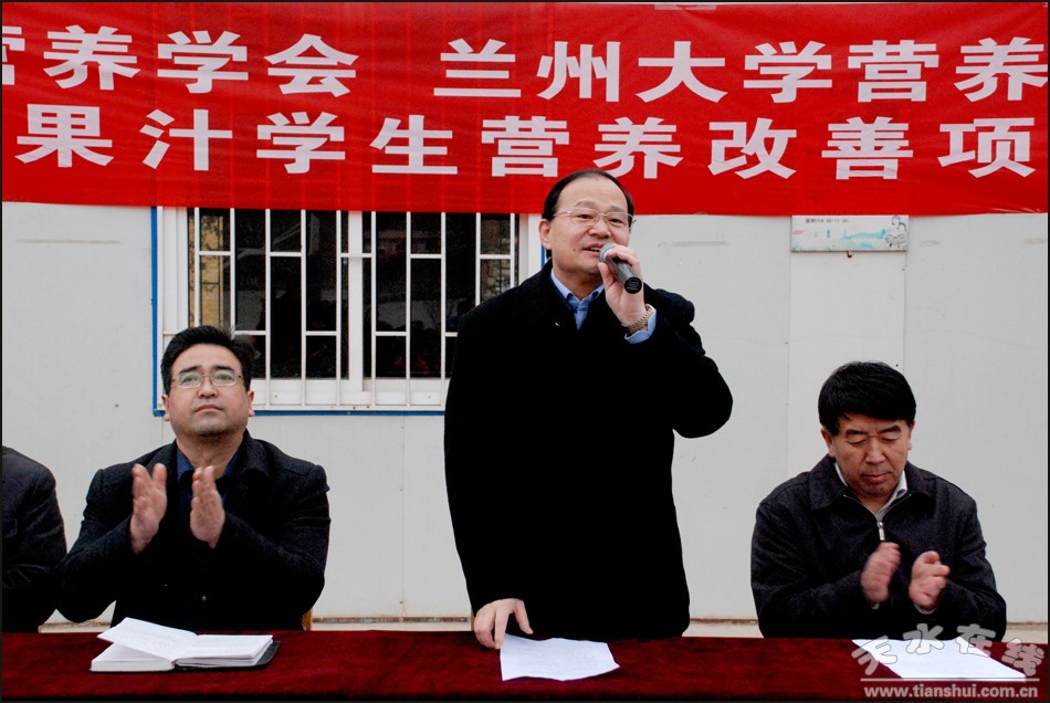 (甘肃省重大科技专项--100﹪苹果汁学生营养改善项目启动仪式在我省贫困地区学校陇西通安驿小学举行)