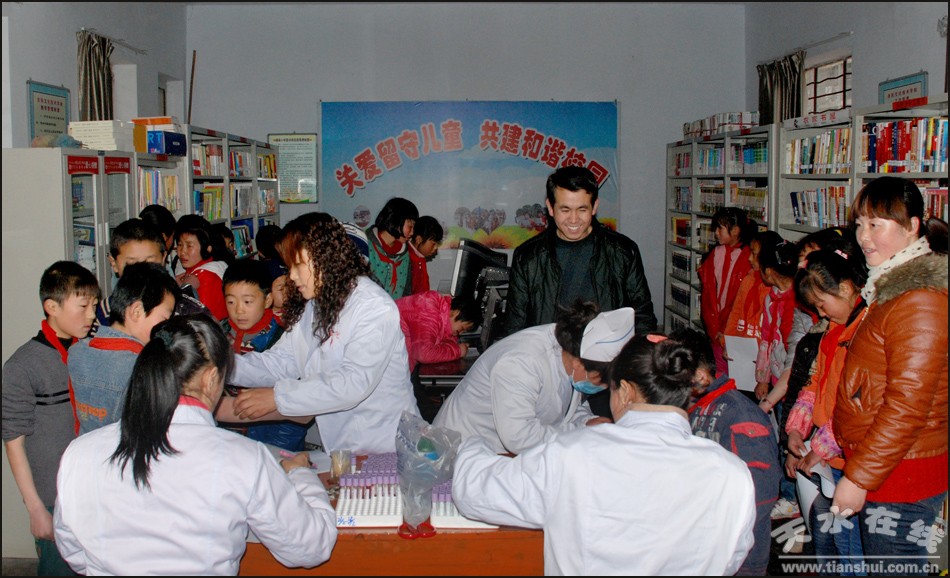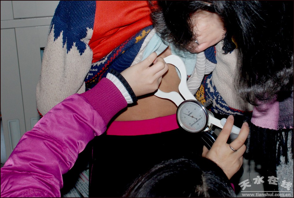 (项目组对通安驿小学220名学生进行体格检查)