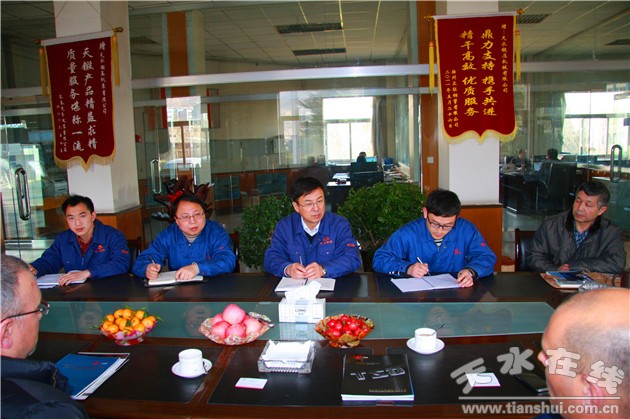 在第八届数控机床展闭展后,被天水锻压机床(集团)有限公司新机型吸引的欧洲客商一行马不停蹄赶往天水锻压机床(集团)有限公司进行业务洽谈,技术交流,进一步加深双方合作。