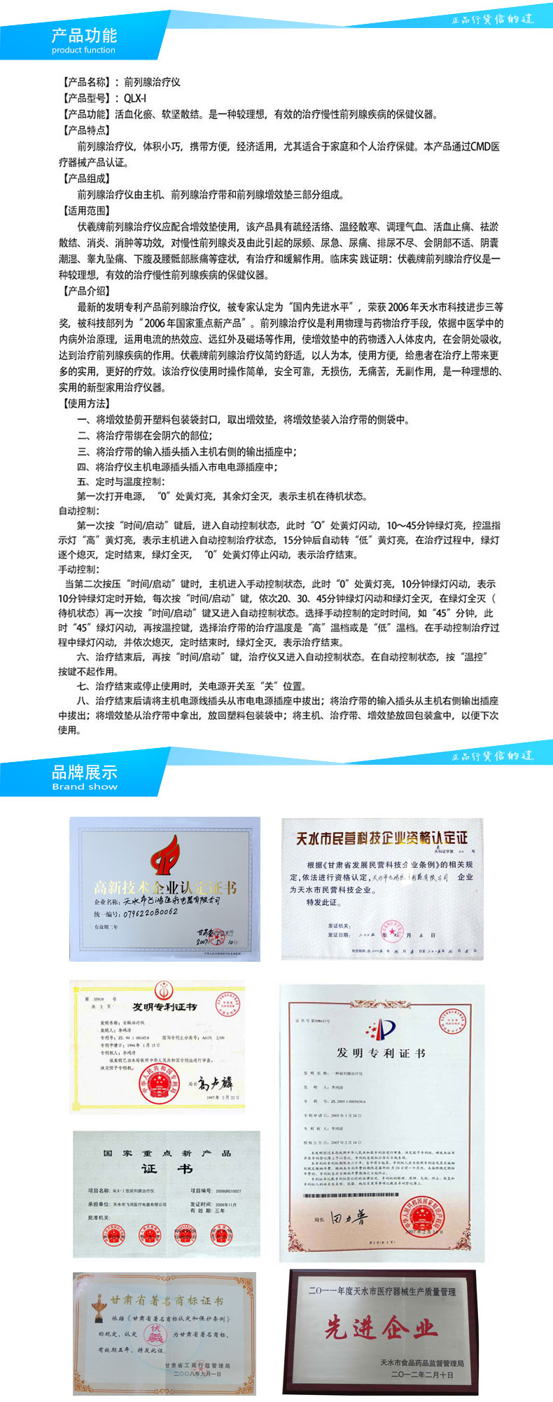 天水在线网店商品介绍:伏羲牌前列腺治疗仪(图)