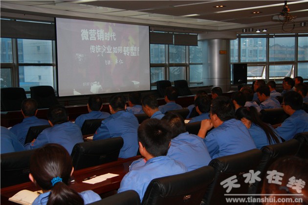 9月9日下午,天水锻压机床(集团)有限公司在三楼会议室举行了《微营销时代——传统企业如何转型成长》的网络营销培训,公司高层领导、中层干部、营销人员、技术人员等100多人参加了培训,接受了网络营销的新思维、新知识、新观点,提升了员工的网络营销的能力。