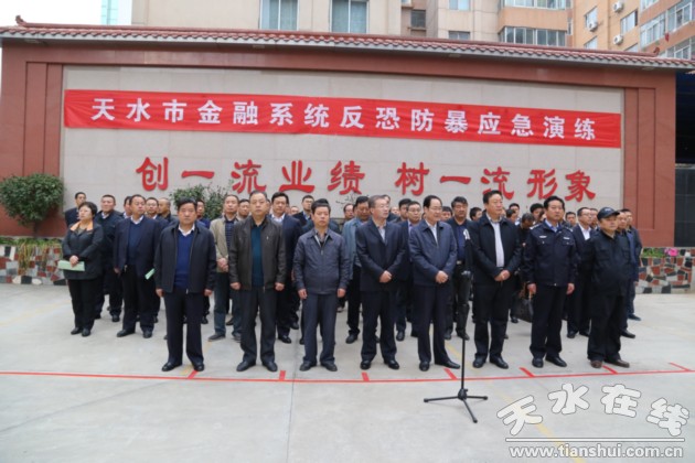 10月14日上午,报请市政法委批准后,秦州合行两项演练在中梁乡正式开始。省人民银行、市综治办、市人民银行、市公安局、天水稽核审计中心领导和全市20余家金融单位100余人全程观摩了演练活动。