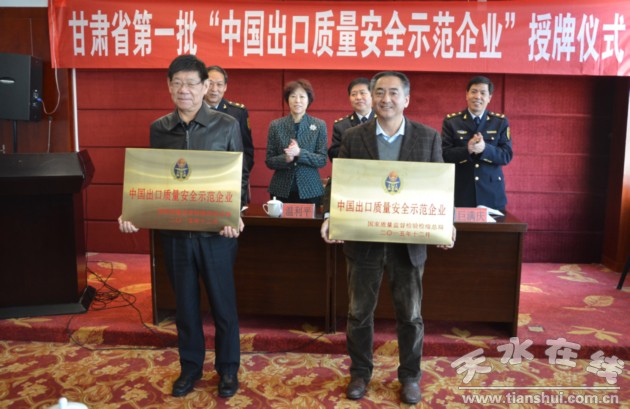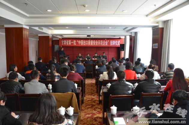 2月26日下午,甘肃省检验检疫局在华天电子宾馆4楼会议室举行“中国出口质量安全示范企业”授牌仪式,为荣获甘肃省第一批此殊荣的华天科技股份有限公司和星火机床有限责任公司两家企业授牌。