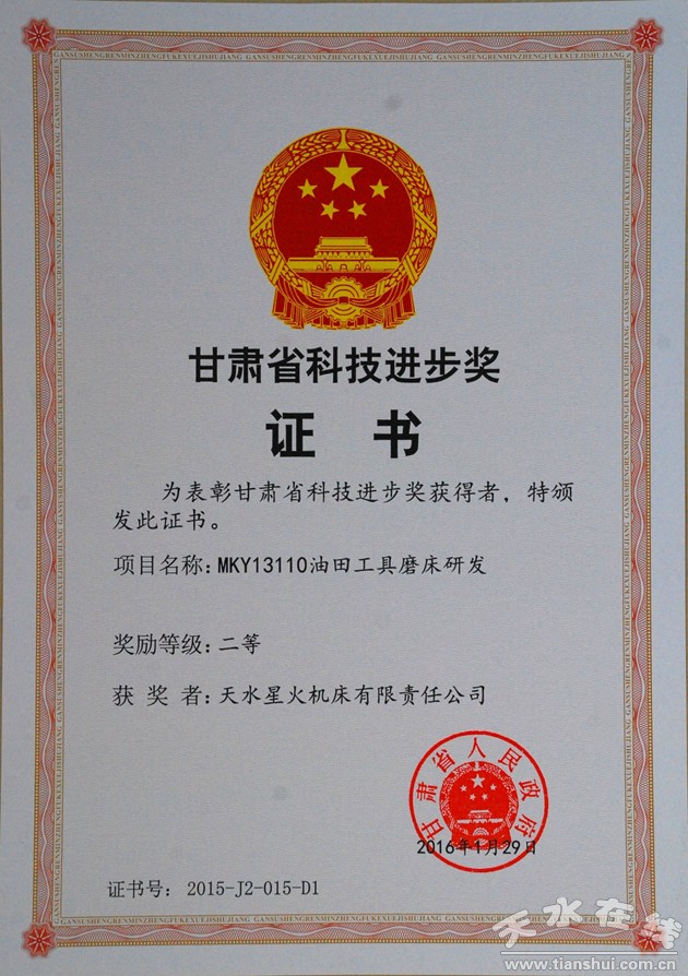 3月25日,天水市科学技术奖励大会在市迎宾馆隆重举行,会议表彰奖励了为天水市科技事业发展作出突出贡献的单位和科技工作者。星火机床公司科技成果油田工具磨同时获甘肃省科技进步二等奖及市科技进步一等奖,轧辊测量装置专利技术荣获省专利三等奖受到大会表彰奖励。星火机床公司副总经理刘强、郭建慧及技术中心黄玉明、马成稳、李小东参加了会议。