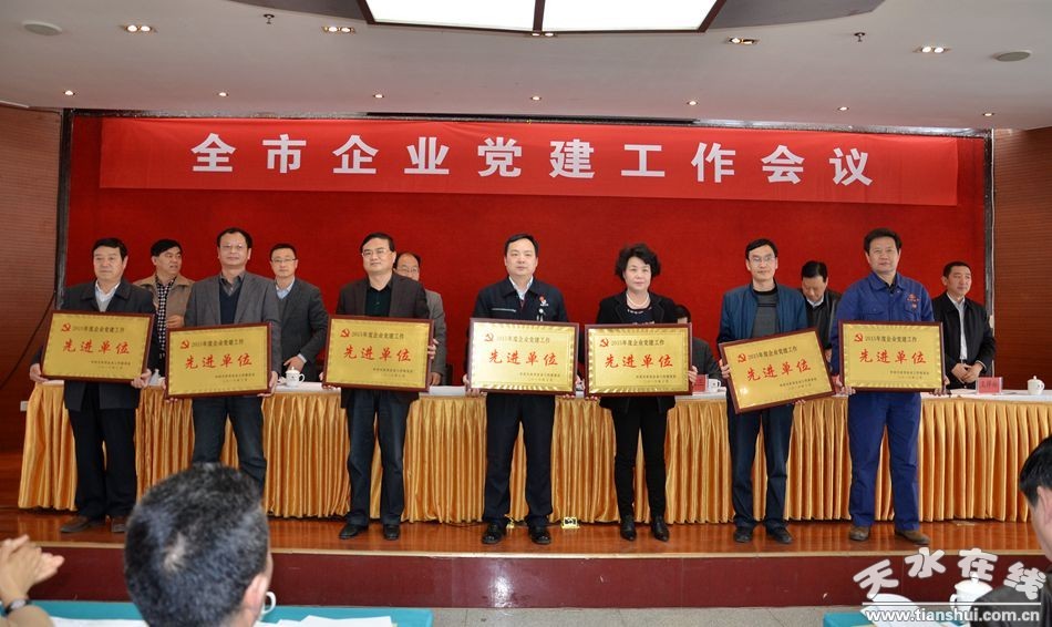 3月25日下午,全市企业党建工作会议在天辰大酒店四楼会议室召开,市委常委、政法委书记赵卫东参加了会议并发表了讲话,会议由市委副秘书长熊卫三同志主持,市企业工委书记、工信委主任、工信委党委书记王祥林做了企业党建工作报告,会上表彰了20户2015年度企业党建工作先进单位,天水锻压机床集党委荣获先进单位,受到表彰,并上台领奖。