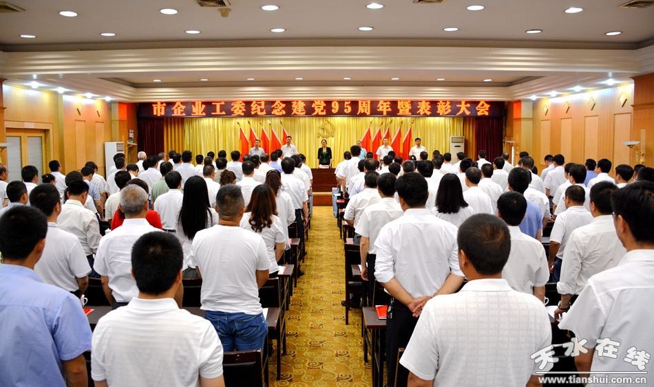 6月29日上午,天水市企业工委召开了纪念建党95周年暨表彰大会,会议由市企业工委书记王祥林同志主持,市委组织部、市纪委、市委宣传部、市政府等部门相关负责人参加会议并在主席台就座。全市工信委所属的65户企业的党委书记和受表彰代表和个人共计160多名参加了会议。