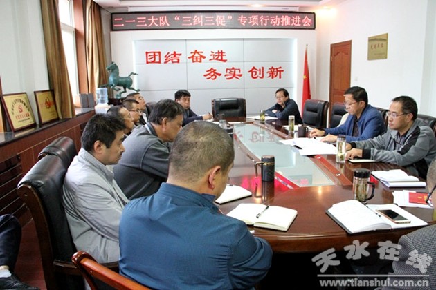 为深入贯彻落实甘肃省纪委正在全省各级机关开展的“纠正不担当不作为和弄虚作假问题、促进中央和省委省政府决策部署落实、促进全省经济社会平稳健康发展、促进党员干部作风明显好转”的“三纠三促”专项行动。9月27日,大队召开“三纠三促”专项行动推进会,安排部署具体工作。专项行动领导小组成员参加了会议。党委副书记、纪委书记李国彪同志主持了会议。