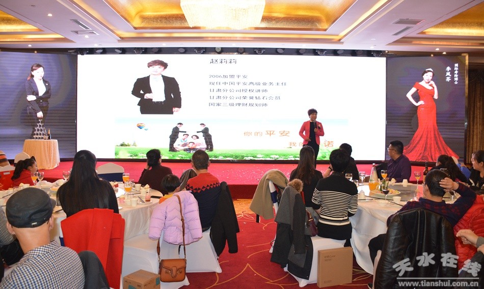 期间,天合集团董事长李忠表代表全体客户朋友感谢中国平安李凤芬对客户的无私奉献和关爱。中国平安天水支公司优秀导师赵莉莉向广大客户分享了财富经验等内容,让在座的来宾们纷纷鼓掌认同。