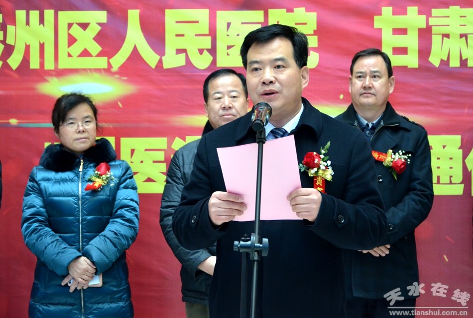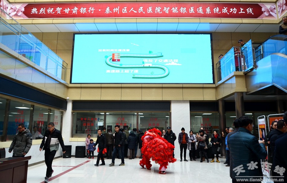 开通当天,天水市人民政府副秘书长李多江、副秘书长赵晓东,秦州区卫计局副局长程杰梅,甘肃广济医疗教育投资股份有限公司董事长张战龙,甘肃银行天水分行党委书记、行长陈金辉,天水市秦州区人民医院院长杨彦,东软集团股份有限公司甘肃区总经理罗涛及秦州区人民医院全体中层管理人员与甘肃银行天水分行领导班子成员及相关业务骨干、医院患者等共计200余人共同见证了这一令人欢欣鼓舞的时刻。