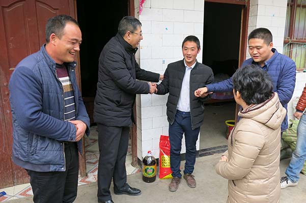 为深入贯彻落实党的十九大精神,认真落实甘肃省脱贫攻坚相关会议精神和省委书记林铎重要讲话精神,按照《长城电工2018年脱贫攻坚实施计划》, 1月25日,甘肃省国有资产投资集团有限公司党委委员、副总经理,长城电工党委书记、董事长杨林,长城电工党委副书记、工会主席郭满元一行冒雪赴陇南市武都区,与武都区领导座谈脱贫攻坚帮扶工作并深入长城电工帮扶的五库乡、月照乡帮扶村看望慰问困难群众。