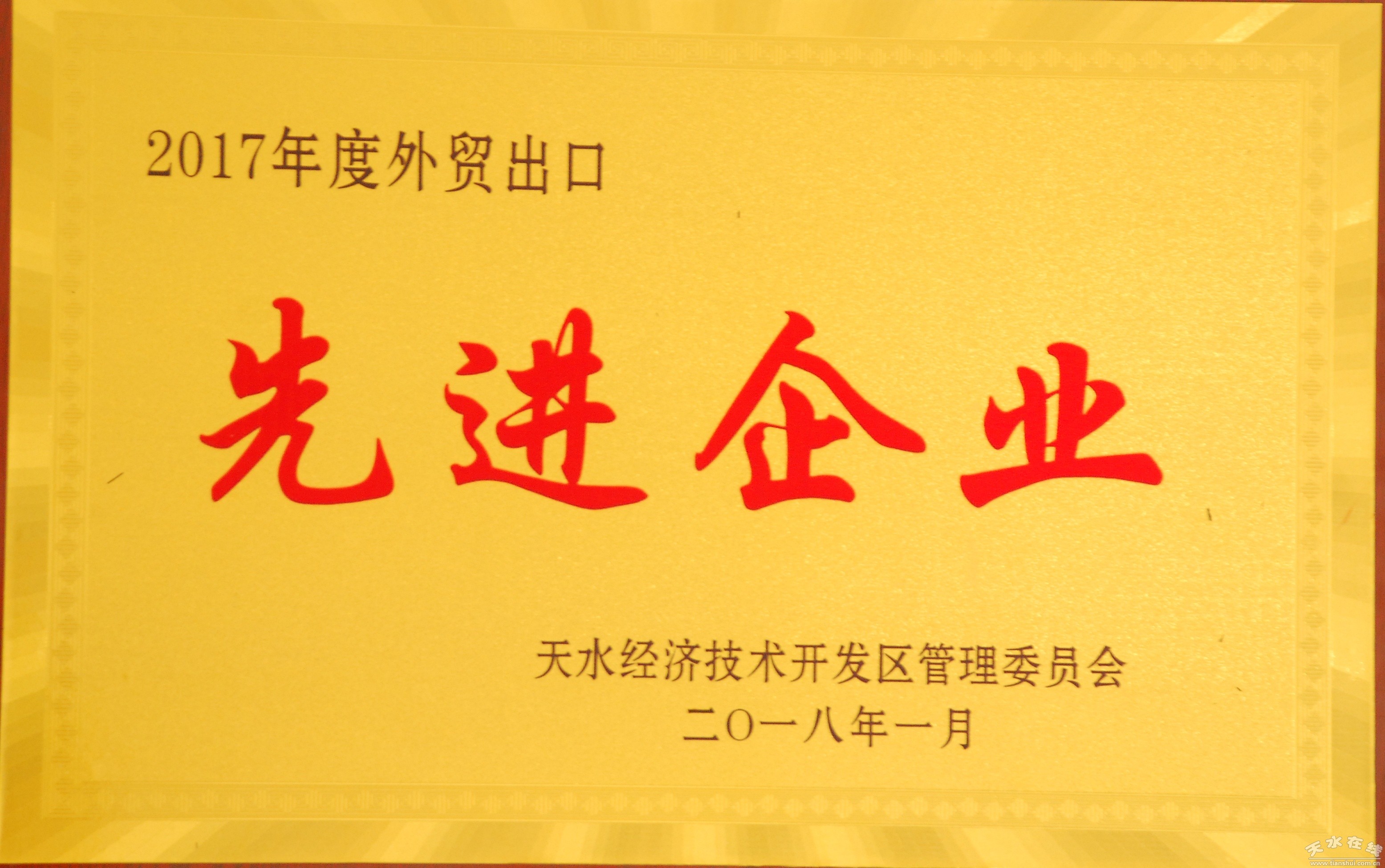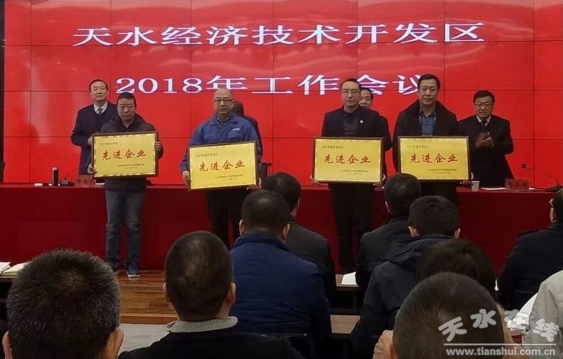 1月30日上午,天水经济技术开发区召开2018年工作会议,公司荣获开发区2017年度科技创新、外贸出口先进企业称号,受到大会表彰奖励。公司党委副书记、工会主席蒋俊参加会议并领取了奖牌。