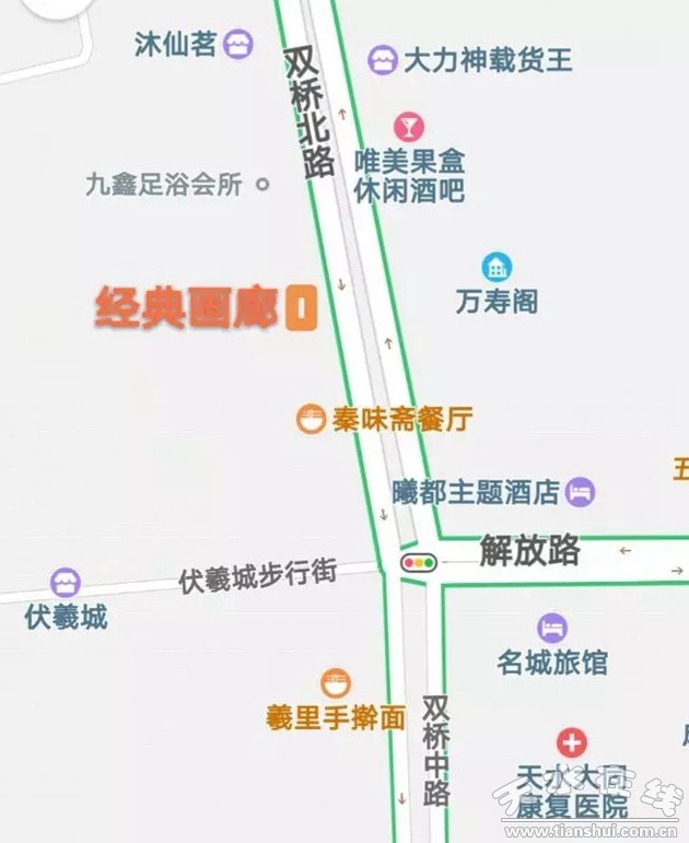 从起点向伏羲庙方向行驶,到达伏羲城东牌坊,北侧30米,即可到达。