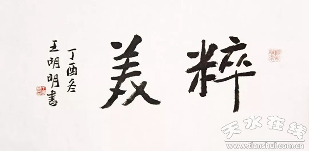 王明明、王卫明的书法既接续文人传统、励志图强、修身立德,激发当代人的社会责任与道德良知,又能基于艺术史的视野与书画实践的经验、登高瞻远、弘教求本,畅抒文人襟抱;既承续了历代书法史的主题传统,也为这一传统开拓了时代新意。王明明擅真书,结体严整工稳,章法疏放有致,整饬规则而不失灵动,圆润朗畅处仪态自生。醇厚雅正,古意盎然。王卫明主攻隶书,积金石学养以筑根柢,出入汉魏诸碑,尽脱柔靡习气。线条雄放,结体遒健,通章气势充沛而细微处时露谨严,几臻“清古厚重”之境。