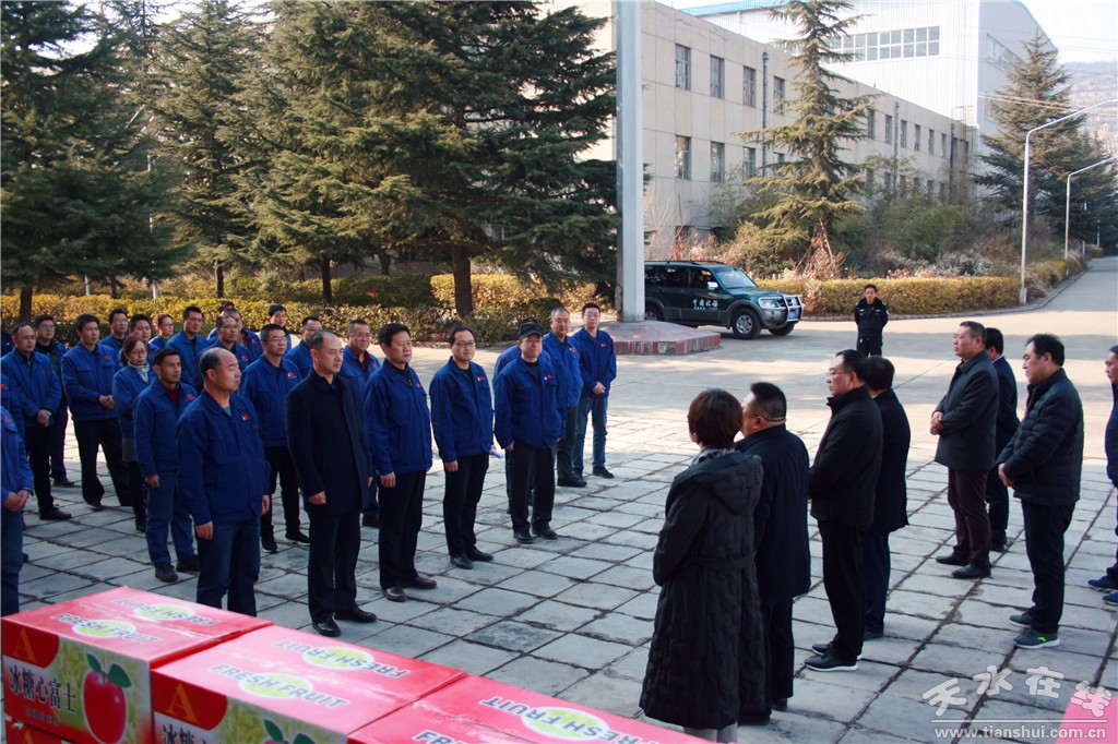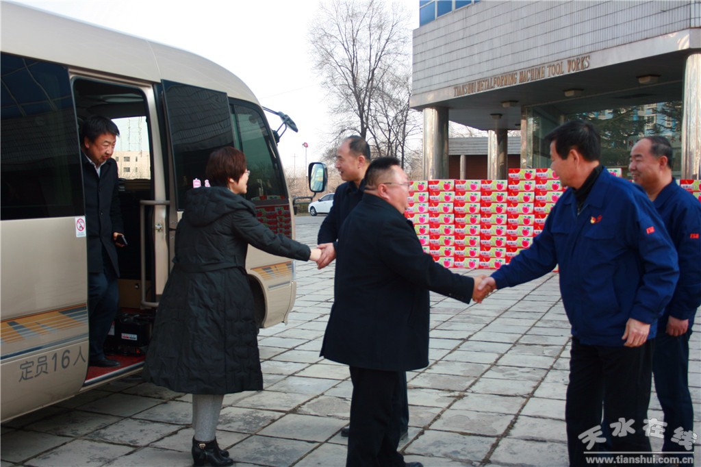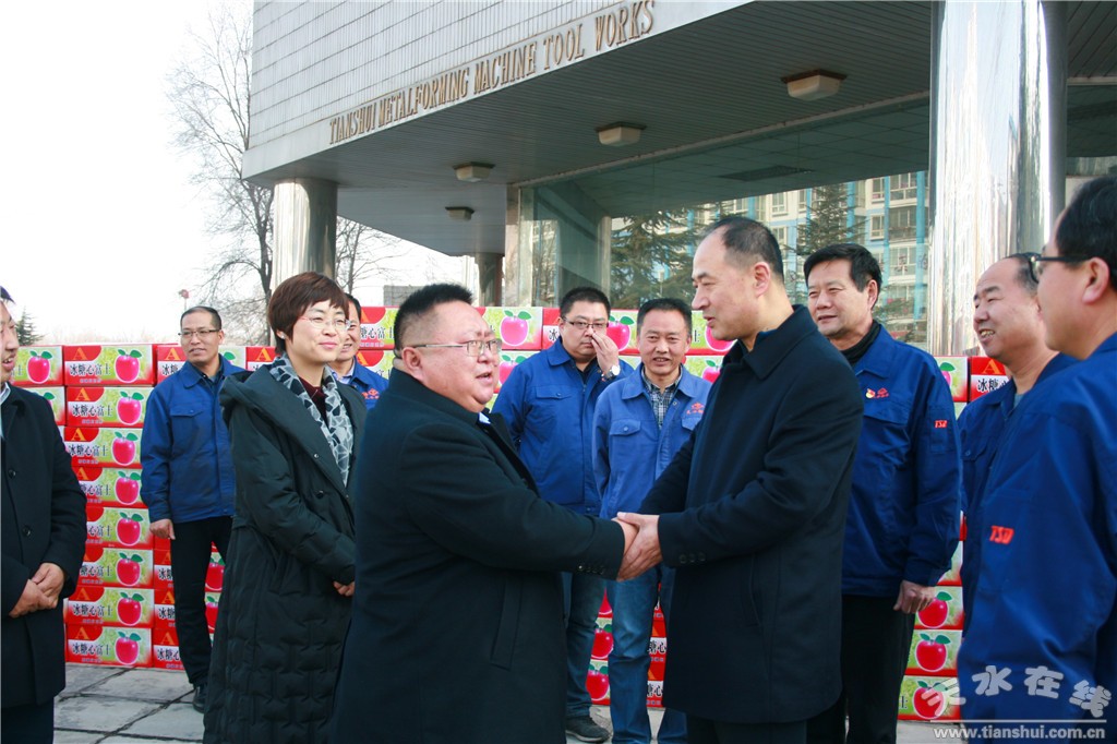 新春佳节即将来临,1月29日下午,麦积区人大常委会主任、区委常委、组织部长赵继文,区委常委、统战部长汪亚伟带领区政府办、人大办、政协办、财政局、工信局、税务局有关负责同志,深入天水锻压机床(集团)有限公司进行了走访慰问,并送来100箱花牛苹果慰问品,代表区四大组织及全区人民对公司致以新春的祝福和良好的祝愿。