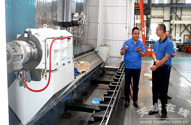 8月14日,天水市政府副市长董小平在市政府副秘书长安平原,天水经济技术开发区管委会主任杨栋等人的陪同下来星火机床公司调研。星火机床集团公司董事长蒋保权,副总经理蒋俊,副总经理、星火机床公司总经理赵锦铭,星火机床公司副总经理鞠家兵等接待并陪同参观生产现场。