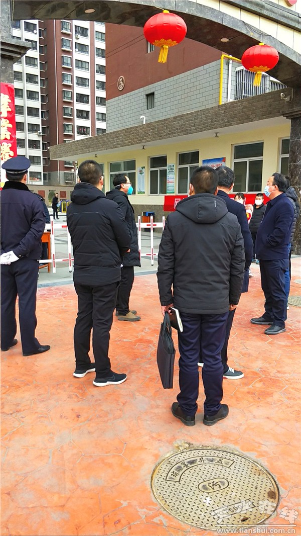 2月5日中午时分,麦积区委副书记、区长成少平带队督查天水锻压天宇华成物业有限公司管辖的天宇华成小区新型冠状病毒感染的肺炎疫情联防联控联治工作。区委常委、常务副区长樊华一同督查,天水锻压机床(集团)有限公司分管领导、天宇华成负责人、区政府办、建设局、道北办事处、道北派出所、铁西苑社区等相关单位负责人参加督查。