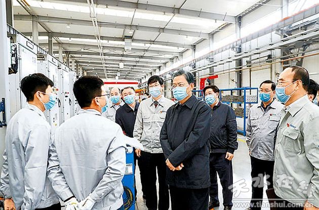 赵乐际书记深入天水长开厂集团公司国家智能制造专项中高压气体绝缘开关设备(GIS)智能制造数字化车间生产现场,走车间、进班组、到岗位,全工序、全流程细致考察,就生产、生活方面与一线职工亲切交流。