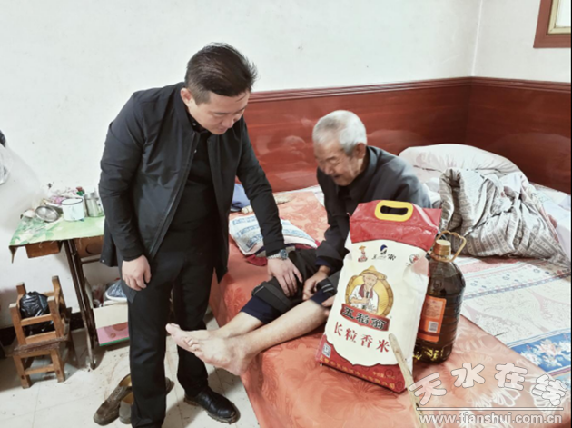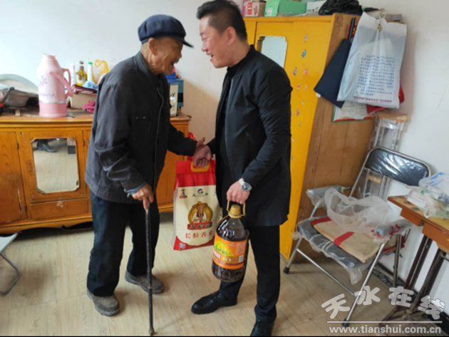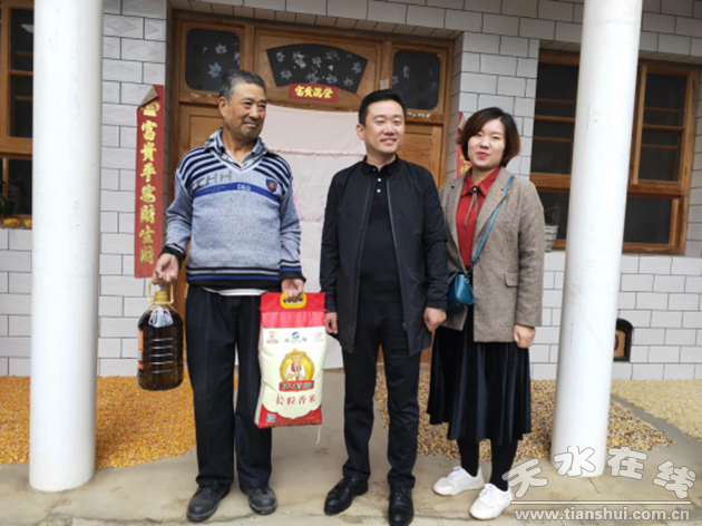 在国庆、中秋双节到来之际,9月28日上午,天水市河南商会副会长、天水一品红商贸有限公司总经理宋光斗带着全体商会会员和会员企业全体员工的深情厚谊,来到秦安县云山镇杨吴村慰问走访。宋光斗会长对家里有残疾人的12家贫困户家庭,走村串户,进门上炕,逐一了解老乡们的生活情况,把慰问品送到每户家中。
