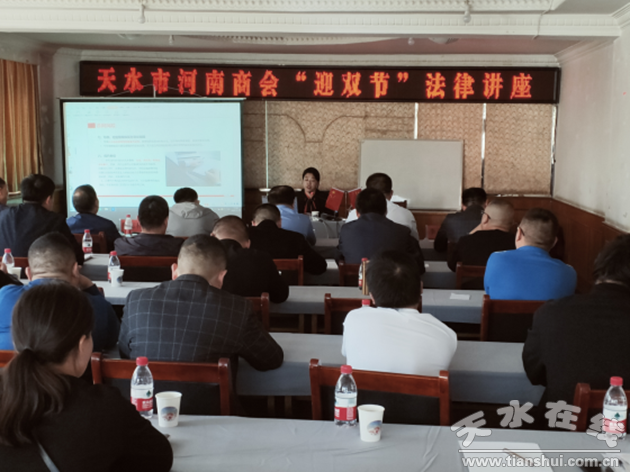 天水市河南商会会长武平舟,执行会长夏朝华、杨世权,常务副会长张忠星、单献春、白红亮、王海旺,副会长翟树平、王纪伟、杜祥林、宋光斗参加了法律讲座。课堂上,大家认识听讲,用心思考,积极互动,气氛热烈。