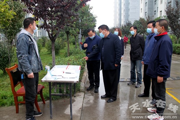 在煜诚家园小区,陈昌礼一行人首先检查了小区门口测温岗设置,宣传展板情况、防疫物资储备、登记记录等,对煜诚家园小区疫情防控工作提出具体要求,陈昌礼强调,煜诚家园小区是全队干部职工居住生活主要的人员聚集地,一定要严格落实防控措施,加强对中高风险区等外地来甘反秦人员的摸排登记和健康监测,严格落实返秦人员居家管控措施;进一步提高疫情防控工作的紧迫感、责任感,要全方位宣传防控措施,进一步提高群众的自我防护意识。