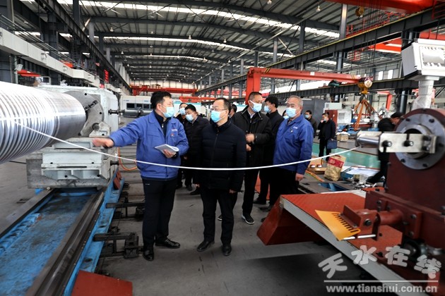 1月19日,天水市委常委、常务副市长贾义翔在市政府副秘书长左绍君,市发改委主任董国杰,麦积区委副书记、区长赵虎生,区委常委、统战部长马秀丽,天水经开区管委会主任胡亚军等领导陪同下,来星火机床公司调研生产经营工作。