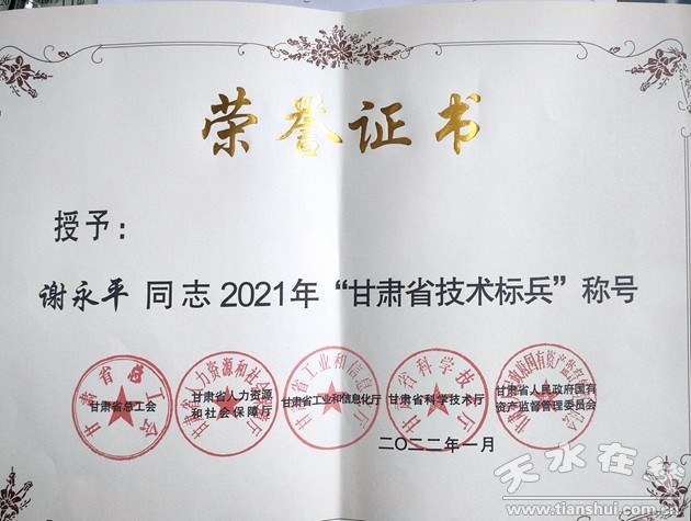 近日,2021年全省百万职工职业技能素质提升活动结果出炉。天水锻压机床(集团)有限公司四分厂电焊工谢永平、张永刚荣获2021年“甘肃省技术标兵”称号。