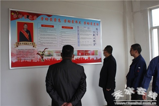 何付忠一行实地查看了集团公司第二联合分厂陈宝平劳模创新工作室和第一联合分厂董小军劳模创新工作室的场所和人员配置建设情况,同时参观了集团公司劳模创新工作室联盟阵地建设。听取了工作室领军人物、市劳动模范陈宝平和麦积区劳动模范董小军关于工作室运作情况的汇报后,对劳模创新工作室团队构成、工作目标、创新成果等情况予以充分肯定。