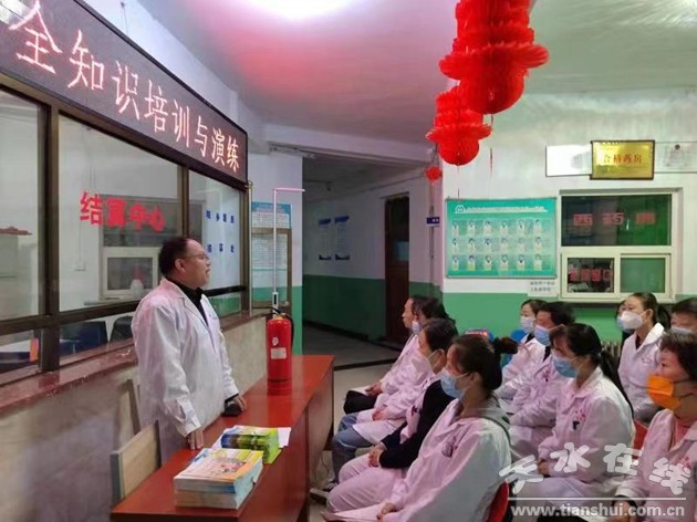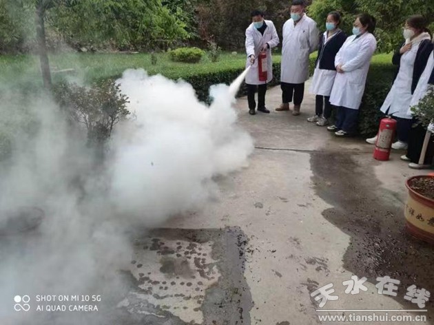星火职工医院安全员刘全成讲解了灭火器的使用方法,员工李彤现场背诵了灭火器使用“四要点”。培训结束后,医务人员进行了火灾扑救、人员疏散和自救逃生演练。(杨丽萍)