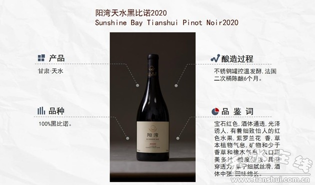 阳湾黑皮诺干红的葡萄主要来自年轻一些的葡萄藤,是一款不同地块葡萄的混酿。清新明亮,有教科书一般的馥郁香气,细腻优雅有质感。