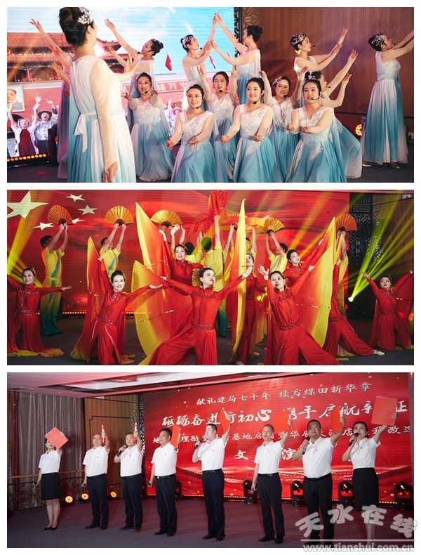仪式结束后,大家一同前往天水华辰大酒店三楼大会议室观看了“砥砺奋进守初心 携手启航新征程”文艺演出。本次文艺演出分光辉历程、地质风采、启梦征程3个篇章,共12个节目,为大家献上了一场精彩绝伦的文化视听盛宴。