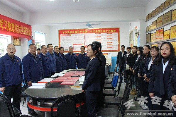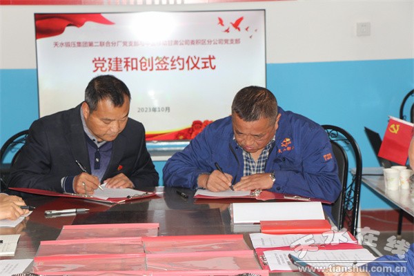 参观结束后举行了学习交流,会议集体学习了习近平总书记在中央主题教育工作会议上的重要讲话精神及《推进中国式现代化要正确处理好六个重大关系》。学习交流前,全体与会人员起立,奏唱国歌;面对党旗,重温入党誓词,铿锵有力的声音响彻云霄。学习交流后,天水锻压集团第二联合分厂党支部支部书记、厂长王拥军作了精彩致词,麦积区移动分公司党支部支部委员、副总经理王斌作了总结讲话。随后,双方签订了《党建和创倡议书》。