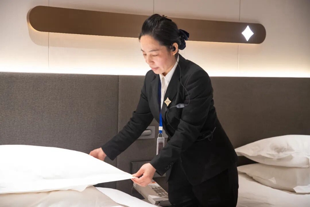 2023年,酒店迎来了大规模升级改造工程,客房部作为改造的核心区域,工程量最大、任务最艰巨,改造期间,既要配合施工队完成旧设施拆除、新设施安装工作,又要保证部分客房正常运营,还要妥善存放大量新旧物资,工作难度极大。面对这一挑战,张妍没有退缩,而是主动扛起责任,作为一名女同志,张妍毫不示弱,和男员工一起抬家具、搬设备,汗水浸湿了衣衫,手上磨出了茧子,她却从未抱怨过一句,每当大家歇口气的时候,她又会独自返回房间,仔细检查是否有遗留的配件或杂物,确保施工区域整洁有序。