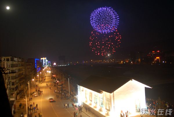 天水在线讯 农历正月十五,秦州区政府主办的焰火晚会为元宵佳节增辉添彩。南郭寺前,藉河两岸,数万市民观看了明月与礼花交相辉映的美丽夜景。(摄影:丁建太 关春明)