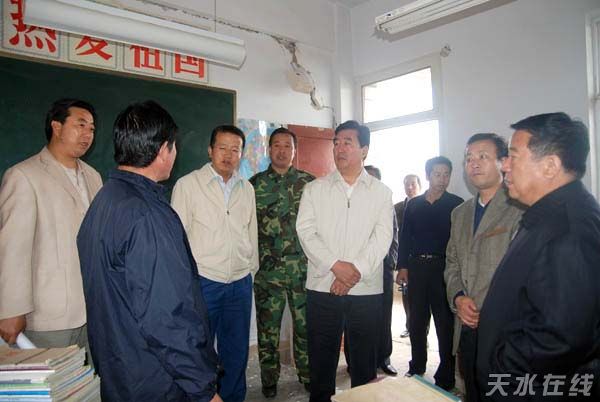天水在线讯 5月13日上午,天水市委书记张景辉在秦州区查看地震灾情。