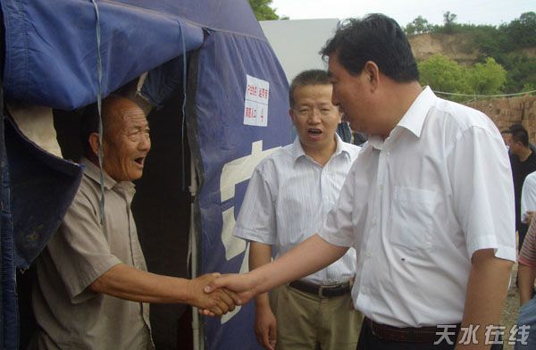 张景辉、李文卿一行首先来到灾情较重的玉泉镇马兰村赵家嘴自然村,看望受灾群众。在村民何林海的帐篷里,张景辉拉着老人的手说:“这次地震灾害给我市带来严重损失,部分群众房屋倒塌,生产生活受到影响,党和政府一定会把受灾群众的生产生活安排好,会想尽一切办法建设好你们的家园。”老人激动地说:“感谢党和政府关怀”。