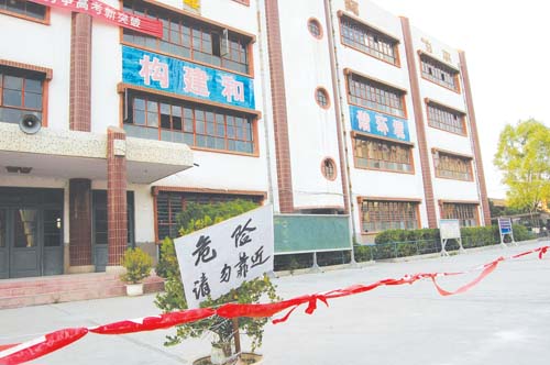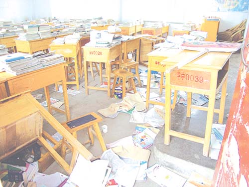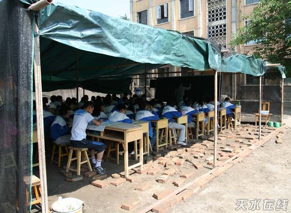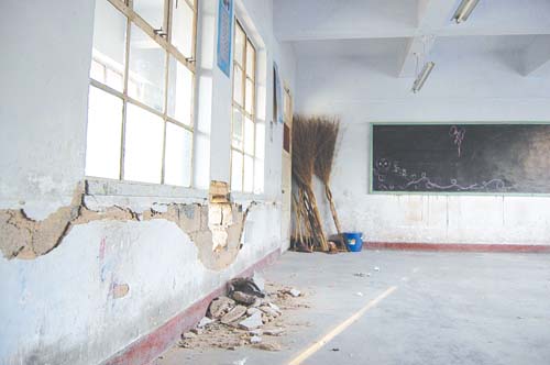 天水市四中教学楼受损严重,一教室墙体出现大洞。
