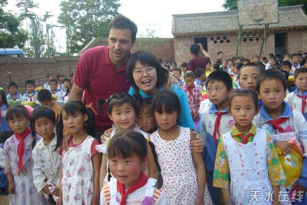 联合国儿基会官员与秦州区杨集小学学生合影