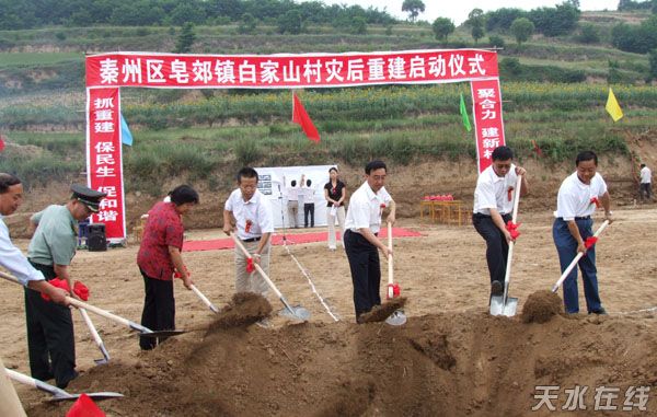7月10日,秦州区皂郊镇白家山村举行了灾后重建启动仪式。