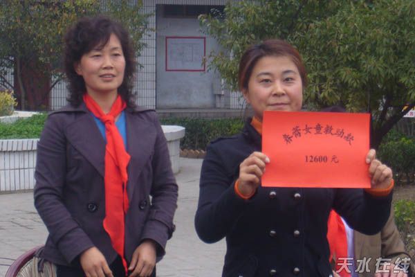 在天水市逸夫小学举行的春蕾女童班开班仪式上,区妇联为春蕾女童班的学生捐款12600元,让42名城市下岗女工的子女充分感受到了党和政府以及社会的温暖。