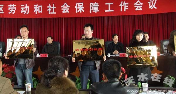 会议还对乡镇农民工培训基地进行了授牌,对2008年全区劳动和社会保障工作先进单位进行了表彰。