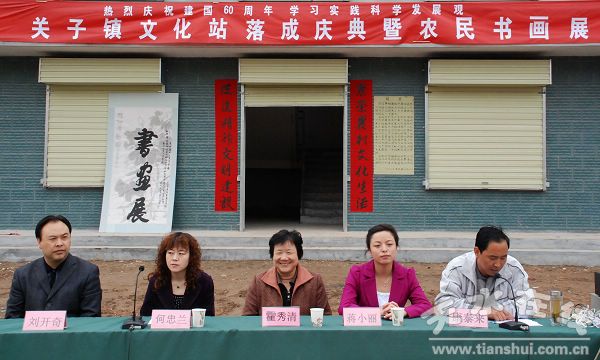 区委常委、宣传部长何忠兰落成典礼上讲话指出,关子镇文化站落成典礼暨关子镇农民书画展,是关子镇文化艺术界的一件喜事,也是关子镇社会事业发展中的一件大事,是关子镇在经济建设取得巨大成就的基础上,社会主义精神文明建设的又一项丰硕成果。